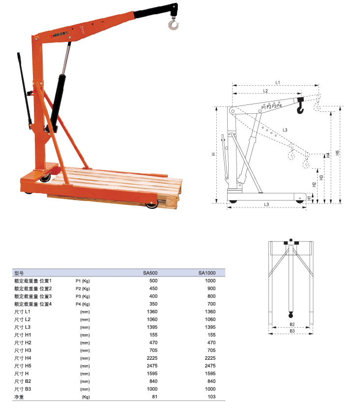 ● 根據需要,吊臂長度可在四個工位中調節。