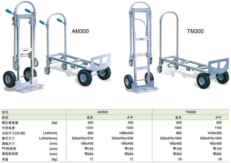 ● 通過腳踩踏板快速把2輪推車變成4輪平臺推車。