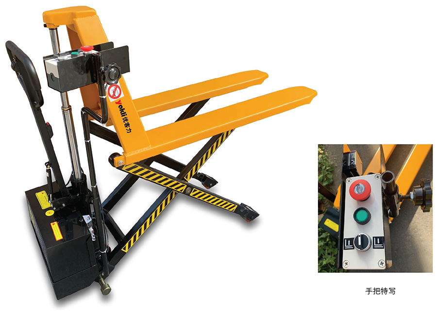 ● 當(dāng)升起高度大于420mm時,叉腿穩(wěn)定的撐住地面,防止滑動,達到剎車的效果。